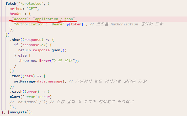 "Accept": "application/json" ν€λλ₯Ό μμ²μ μΆκ°νλ ν΄κ²°λμμ΅λλ€. " JSON νμμ μλ΅μ μνλ€"λ μ νΈλ₯Ό 보λ΄λ κ²μ λλ€. μ΄ ν€λλ μλ²κ° λ°νν μλ΅ νμμ μ§μ νλ μν μ ν©λλ€.