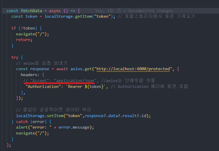 β Axiosλ₯Ό μ¬μ©νλ©΄ κΈ°λ³Έμ μΌλ‘ HTTP μμ²μ λ³΄λΌ λ Accept ν€λμ application/json κ°μ΄ μλμΌλ‘ ν¬ν¨λμ΄ μκΈ° λλ¬Έμ, λ³λλ‘ μ΄ κ°μ λͺ