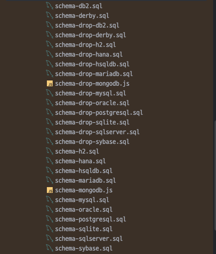 schema-mysql.sqlschema-postgresql.sqlschema-oracle.sqlschema-h2.sqlschema-sqlserver.sql특별한 요구사항이 있는 경우 커스텀 스키마를 생성할 수 있습니다.