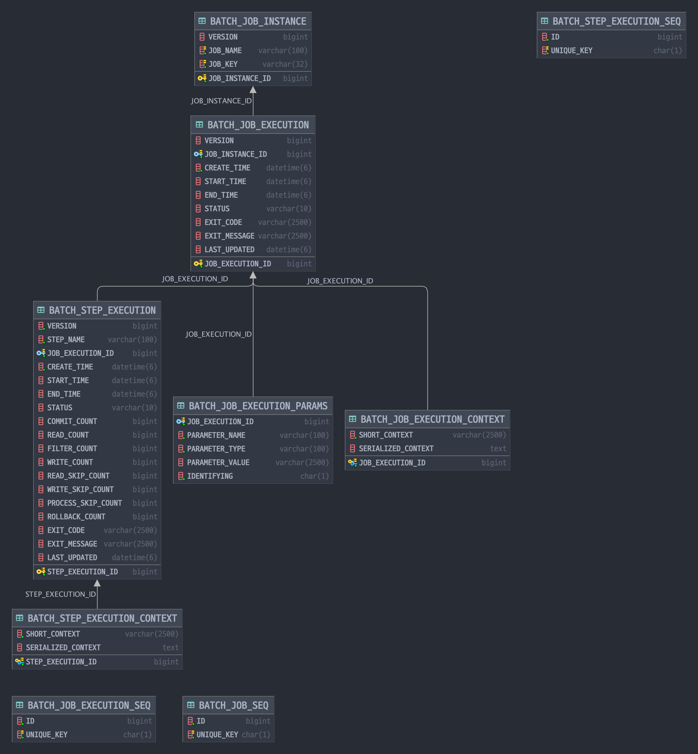 | JOB_EXECUTION_ID | BIGINT | Job Execution ID (PK, FK) |