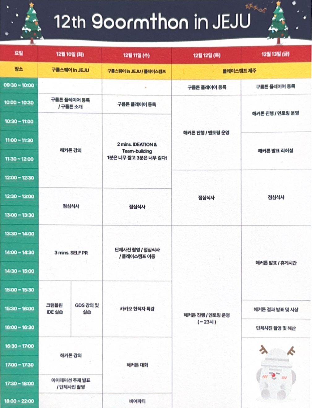 구름톤 12기는 2024. 12. 10 (화) - 12. 13 (금) 일정으로 평일에 총 4일간 진행되었다.