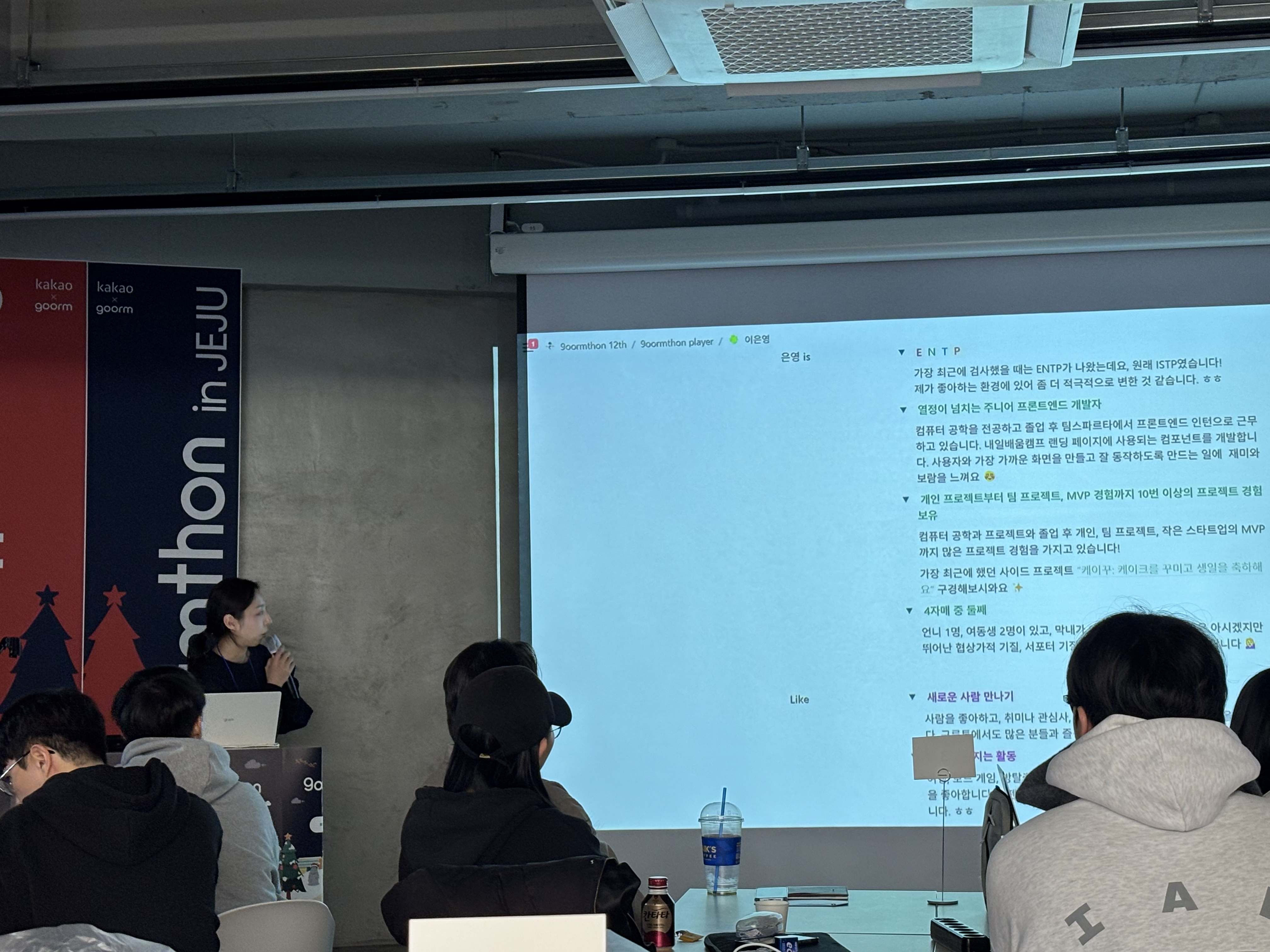 1일차에는 구름 스퀘어 In Jeju에서 해커톤 교육, 아이스브레이킹이 이루어졌다.
