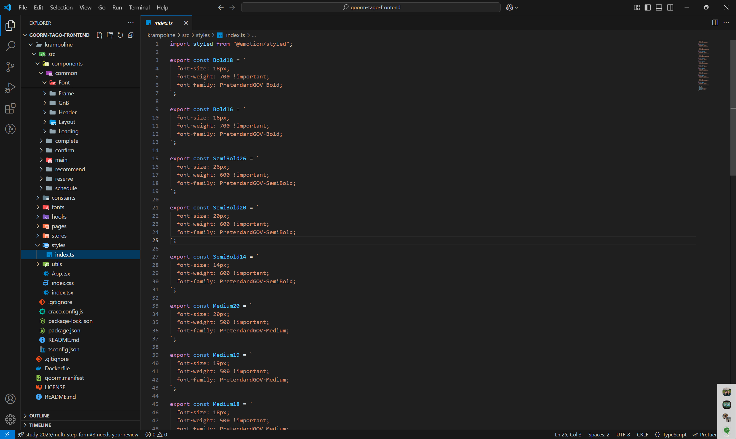 커스텀 스타일을 모두 상수화 해버리고, 폰트를 위한 공통 컴포넌트를 만들어 버렸다.