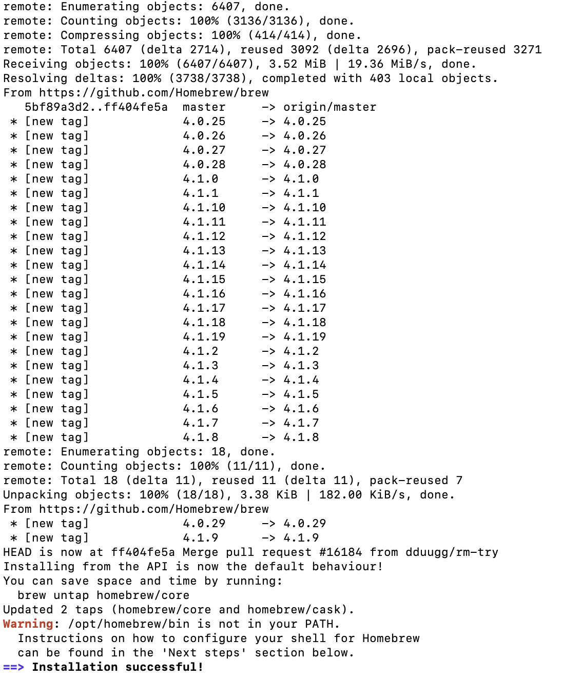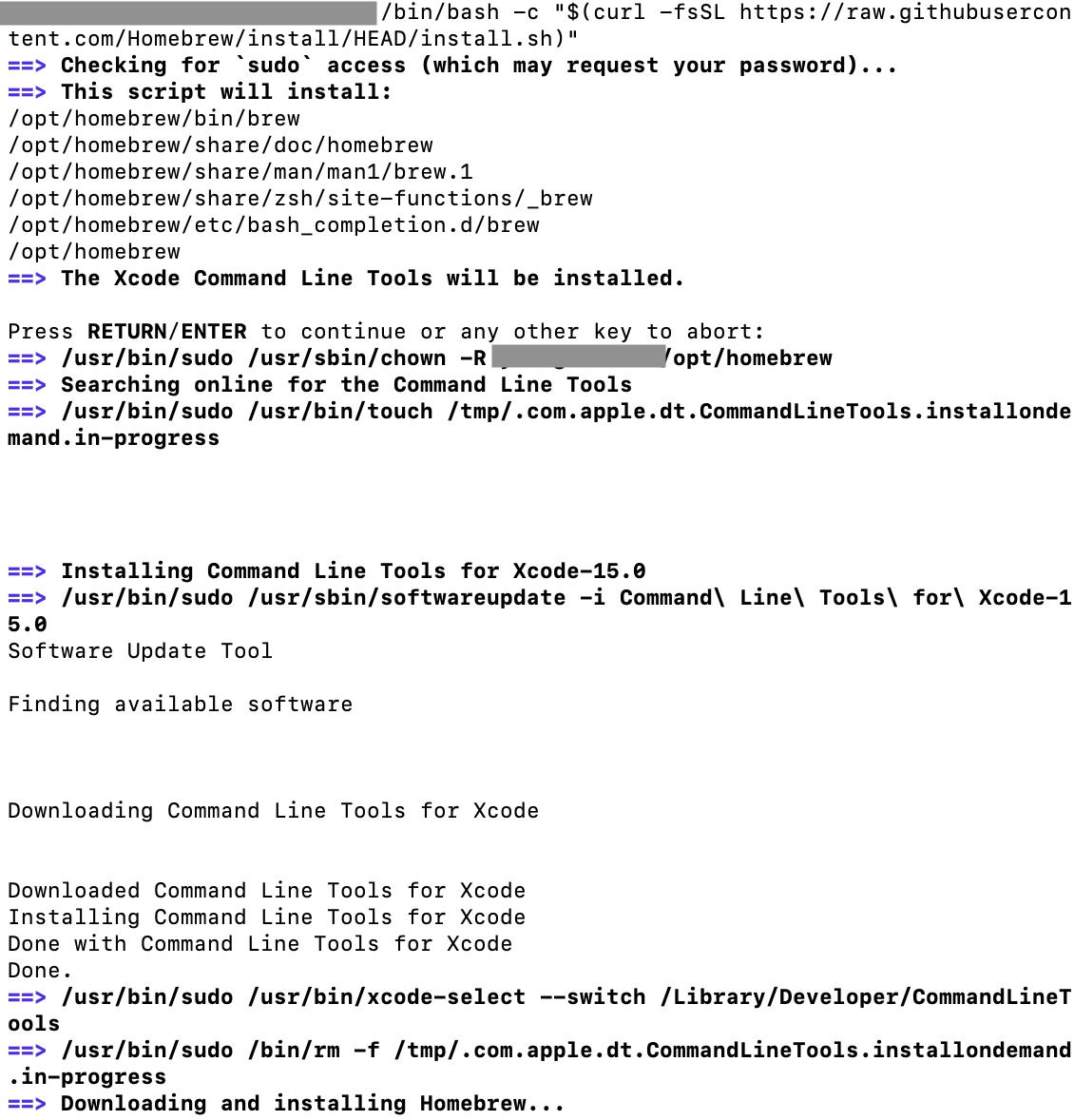 $ /bin/bash -c "$(curl -fsSL https://raw.githubusercontent.com/Homebrew/install/HEAD/install.sh)"