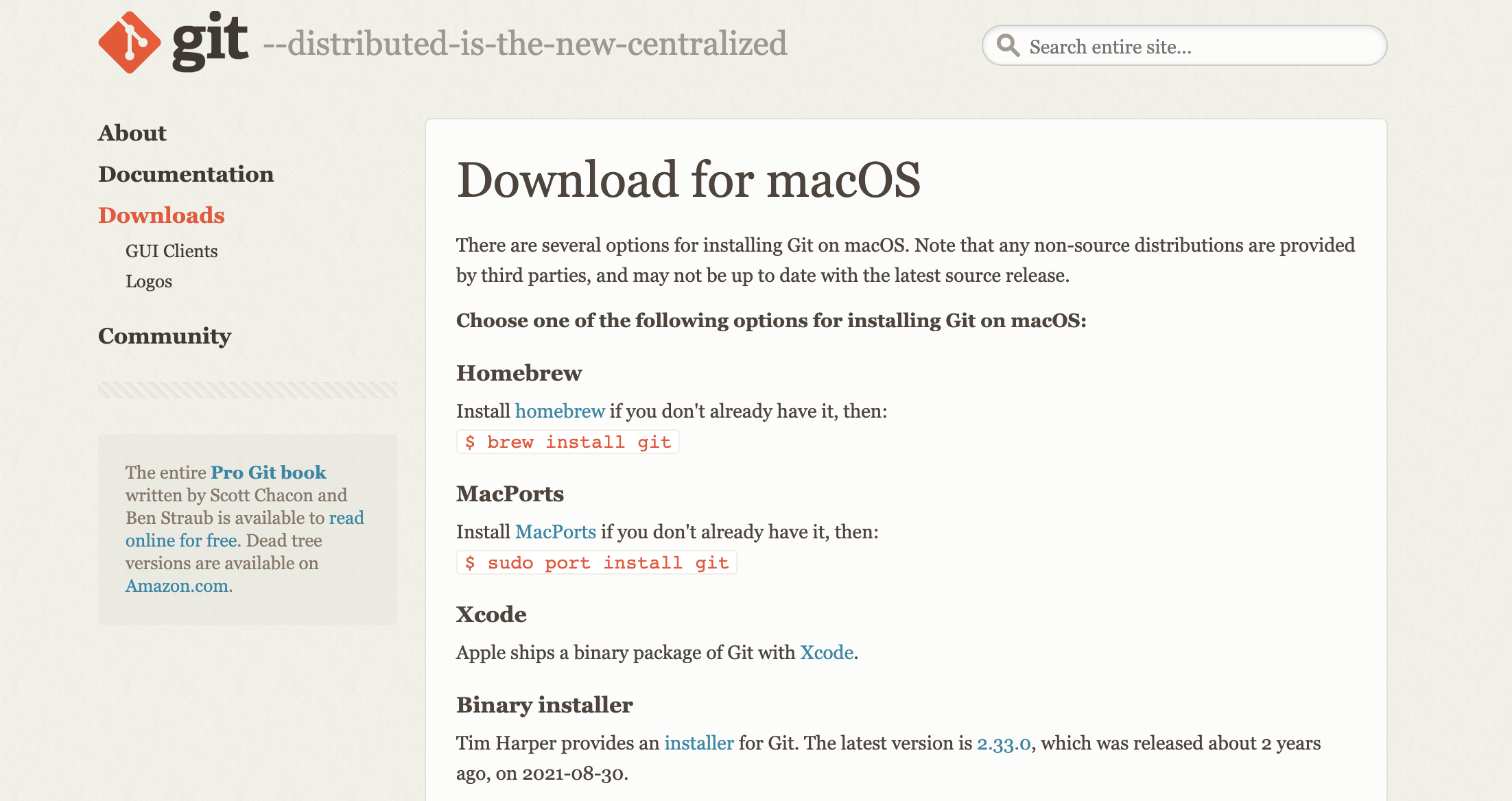 [macOs용 GIT 다운로드] 버튼을 눌러봅시다.