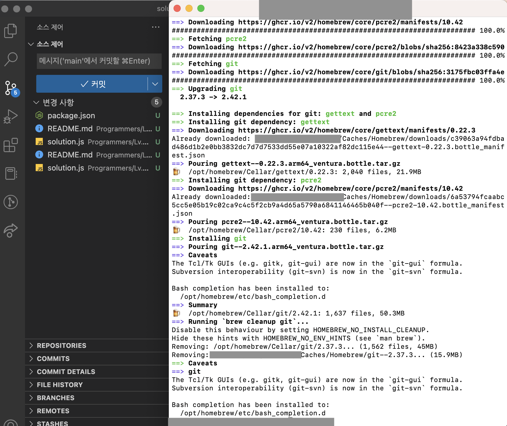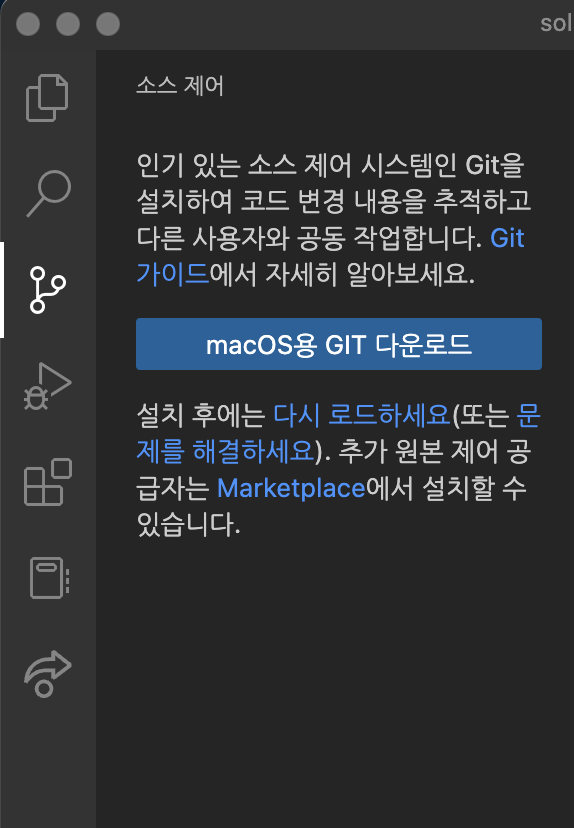 너무 오랜만에 VSCode를 켰더니 git을 설치하라고 뜨네요.