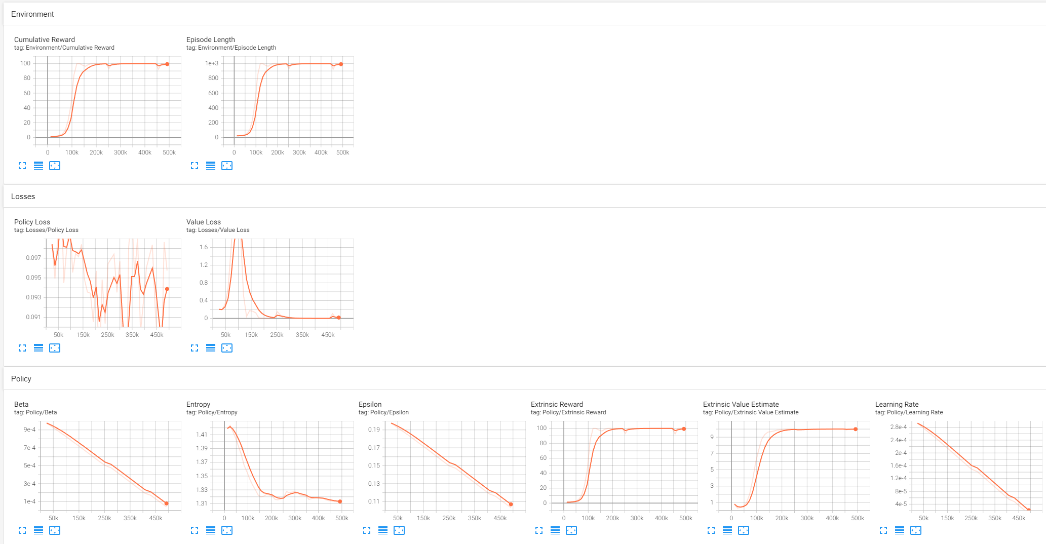 화면상에서 가장 중요한 결과는 Cumulative Reward라고 하네요