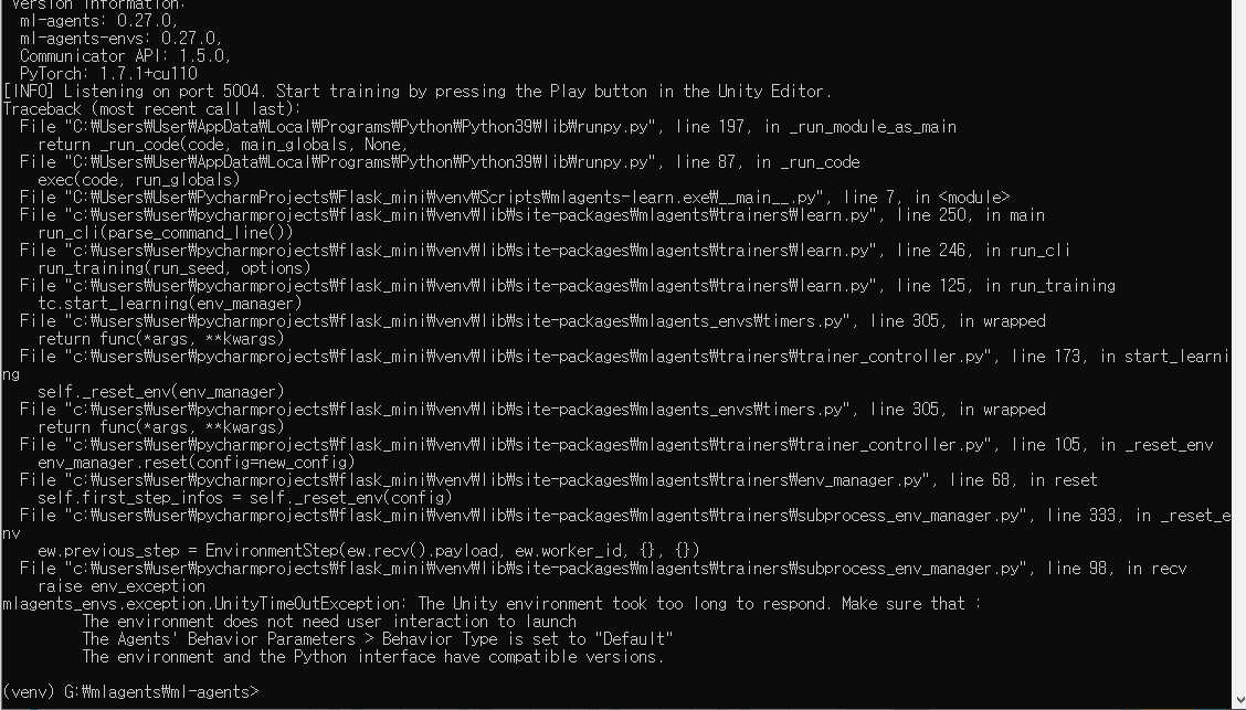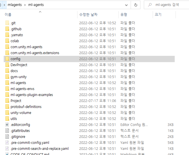 ml-agents가 설치된 경로로 이동해서