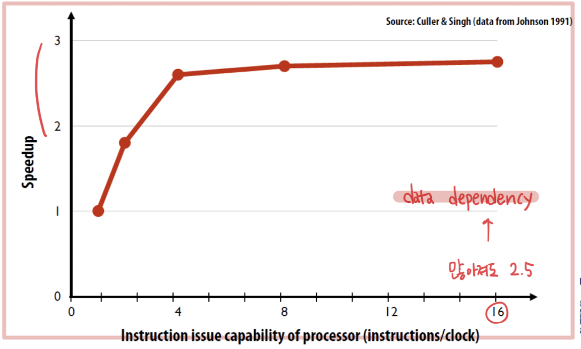 : 동시에 실행할 수 있는 instruction의 수는 결국 processor 내의 ALU의 수와 관련 자원에 의해 제한됨
