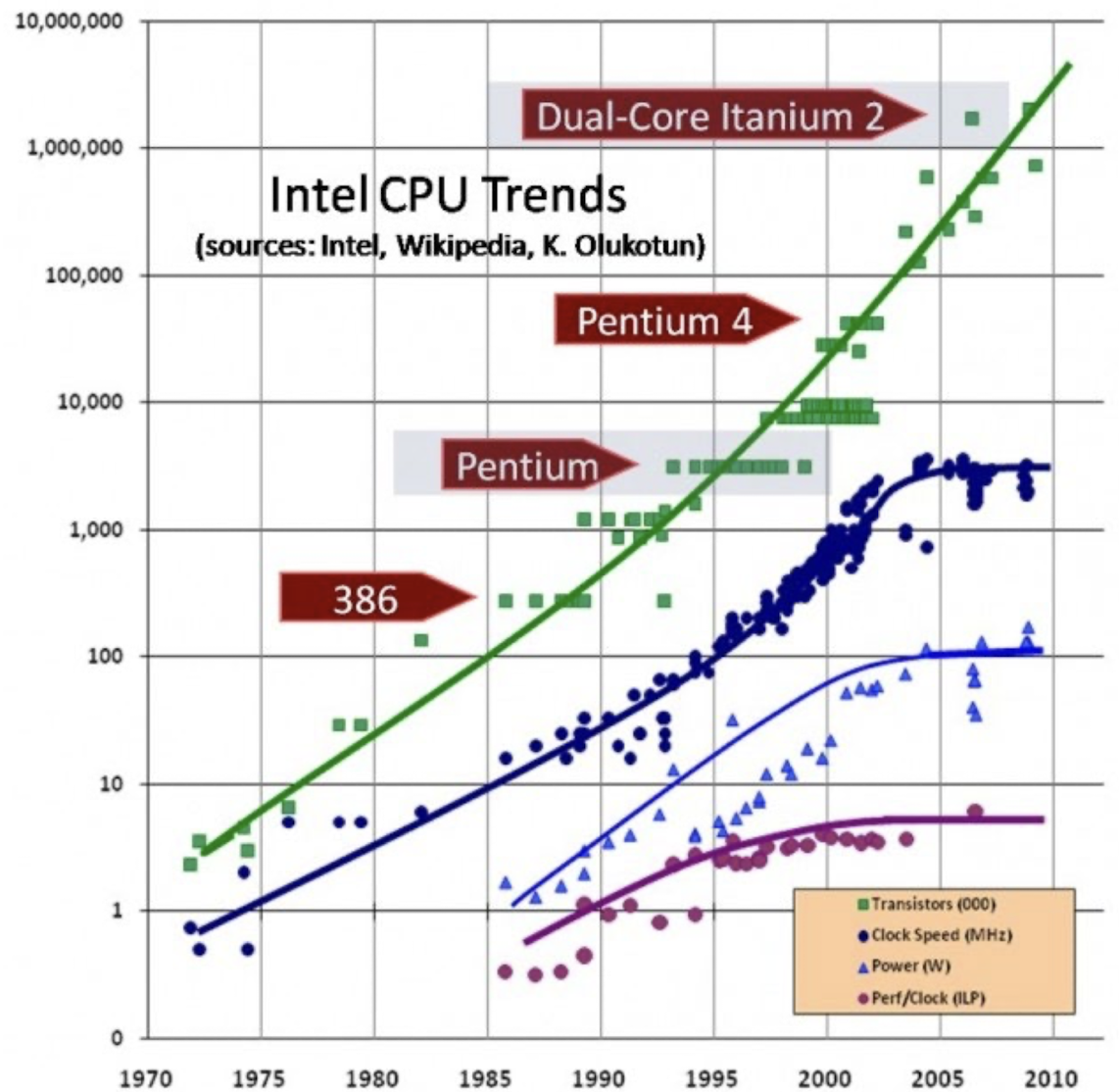 : clock speed 향상의 한계에 직면 (발열 문제)