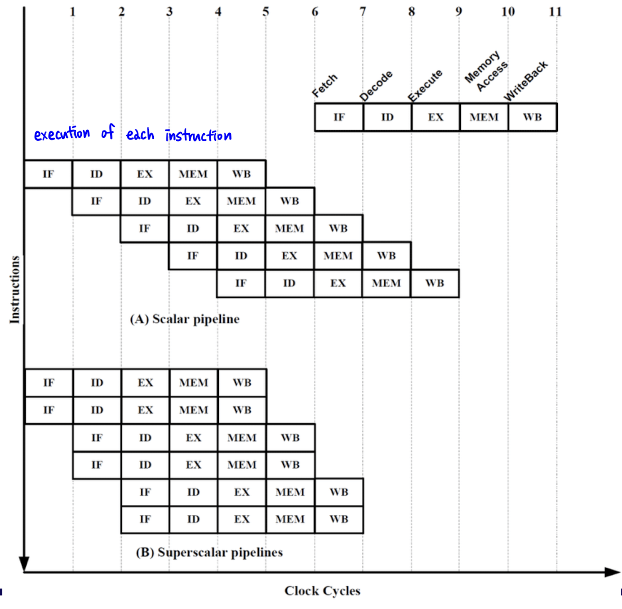 → 해당 예시에서 모든 instruction을 실행하려면 5 cycle이 걸림
