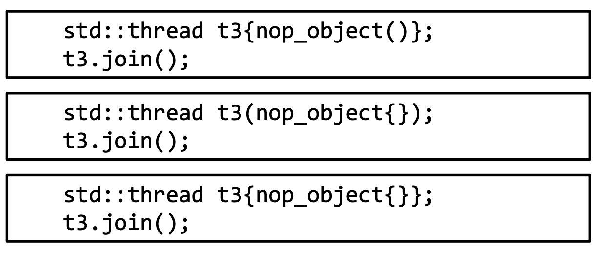 t3를 nop_object 타입의 파라미터를 받고 반환 타입이 std::thread인 함수 선언으로 오해⇒ 해결 방법