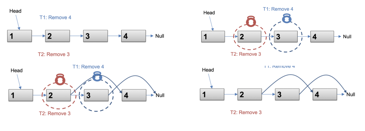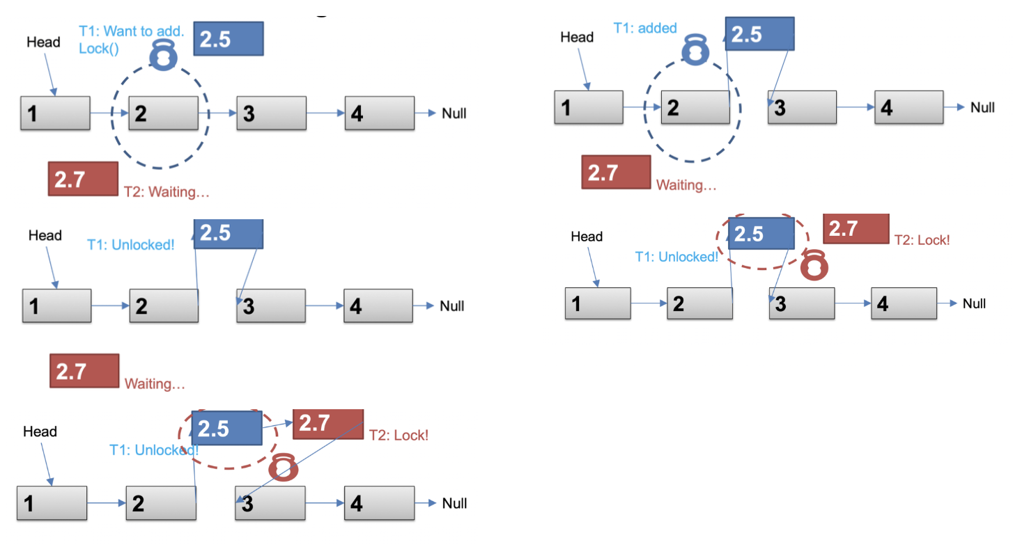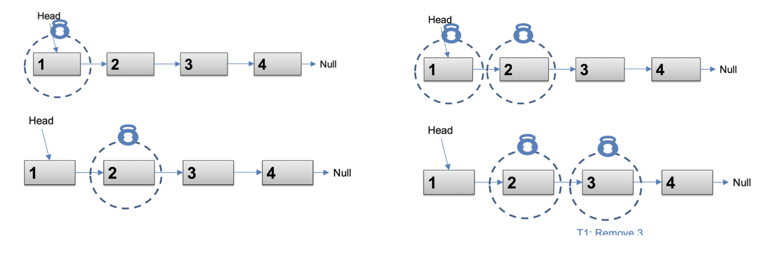 push(), pop() 함수가 동시에 발생 가능⇒ fine-grained locking !