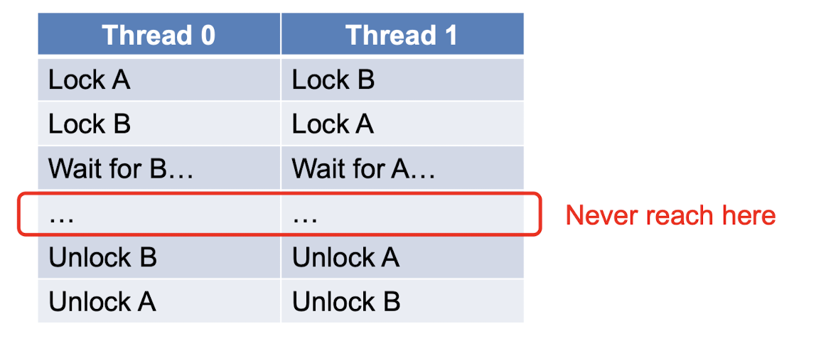 unlock하는 것을 잊는 등, mutex를 부주의하게 사용하면 deadlock 상황이 발생할 수 있음