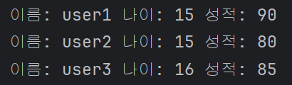 System.out.println("이름: " + m.name + " 나이: " + m.age + " 성적: " + m.grade);
