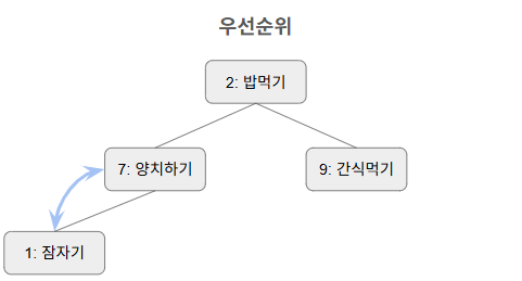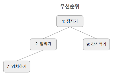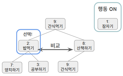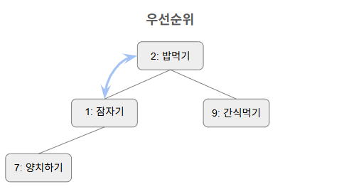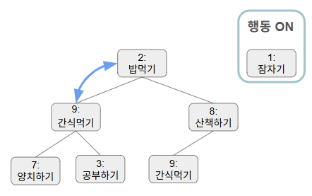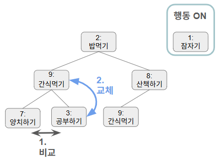 이렇게 행동 우선순위로 정렬된 힙구조가 있다 치자