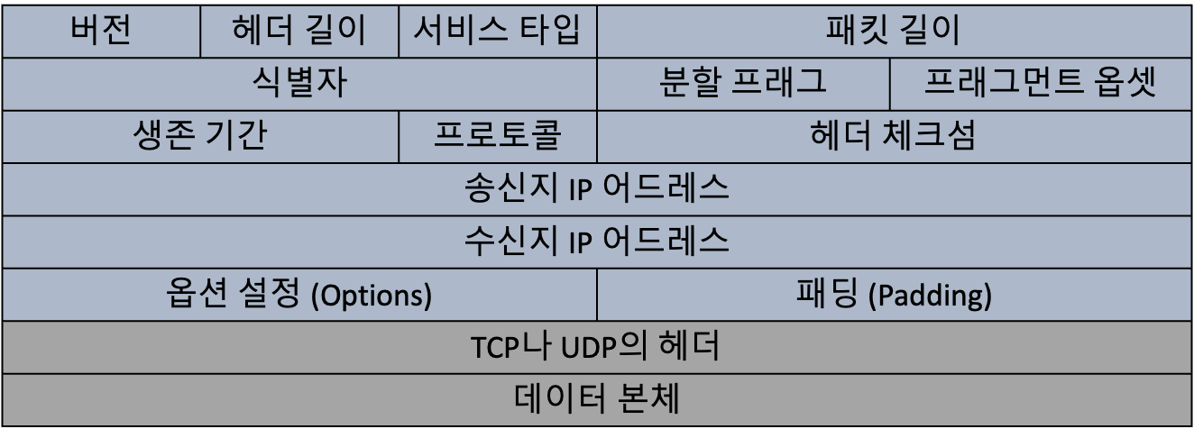 IPv4 패킷의 IP 헤더(IP Header) 에는 송신지와 수신지의 IP 어드레스 외에도 다른 프로토콜의 헤더들처럼 패킷 길이와 같은 다양한 정보들이 있어요.