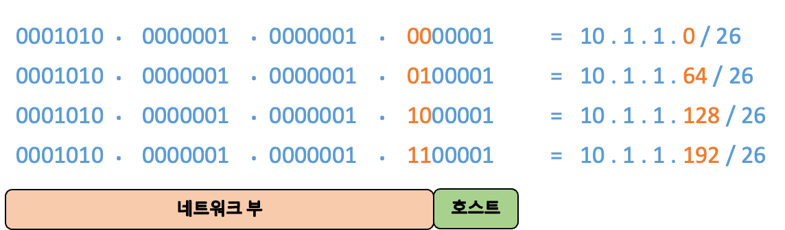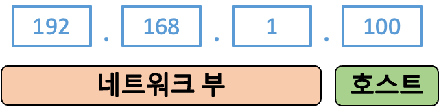 클래스 C: 네트워크 부 24비트, 호스트 부 8비트 ('1', '1', '0' 으로 시작