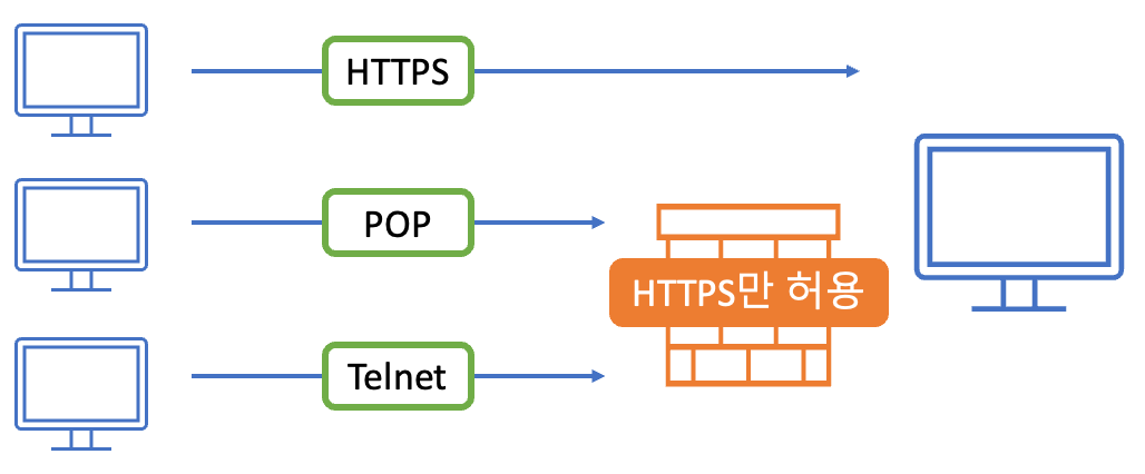 외부에서의 접속을 허용한 네트워크는 해킹과 같은 악의적인 접근을 조심해야 돼요. 이렇게 외부로부터의 접근을 차단할 때 사용하는 방법이 방화벽 이에요. 방화벽은 허가된 통신 외에 모두 차단하기 때문에, 허용된 범주에서만 잘 관리한다면 서버를 안전하게 지킬 수 있어요.