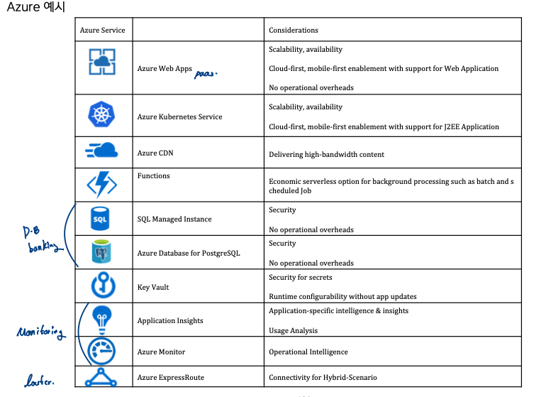 클아우드 서비스 제공업체 다양한 컴퓨팅 서비스가 운영관리를 위한 패턴을 지원 가상네트워크, 스토리지, 가상서버, 자체 컨테이너 서비스, 다양한 Backing(DB message) 서비스, Devops 서비스, 모니터링, 추적 로깅