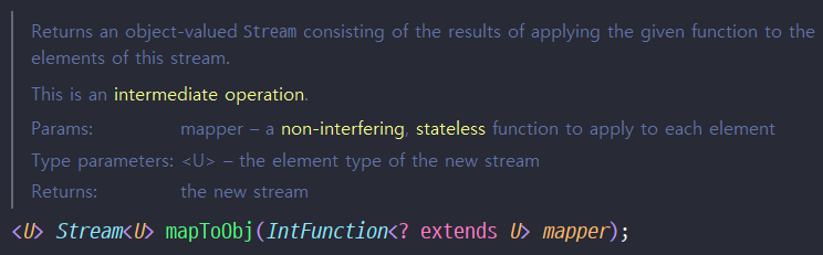 -> IntStream에서 mapToObj를 살펴본 내용인데 IntFunction를 파라미터로 받는다.