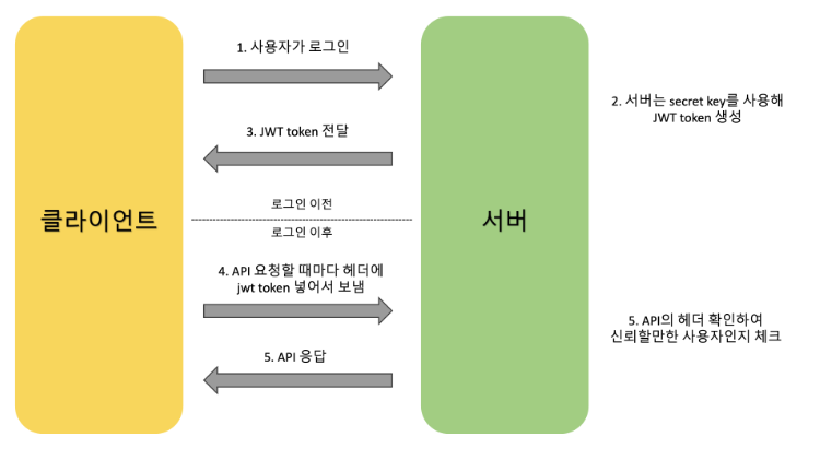 3. 서버는 헤더를 매번 확인해서 사용자가 신뢰할만한지 체크 & 인증이 되면 API에 대한 응답을 보냄
