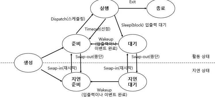 모든 프로세스들은 준비 리스트(준비 완료 큐), CPU 스케줄러가 다음 실행할 프로세스를 선정할때 디스페처를 호출, 디스패처는 준비 리스트에 있는 다음 프로세스가 메모리 올라왔는지 확인,