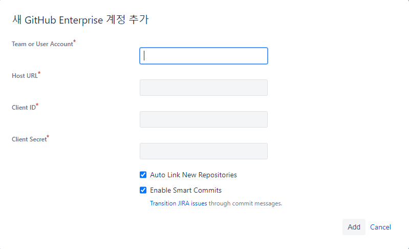 그 후 add와 continue를 눌렀을 때 문제 없이 깃 화면이 뜰것인데... 나는 이미 진행해버려서 첨부하지 못했다. 거기서 인증하기 버튼을 눌러주면 자동으로 git에서 jira를 인식한다.