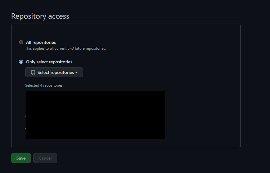 해당 페이지에서는 jira가 접근 가능한 레포지토리를 선택할 수 있는데 전부 접근 가능으로 선택해도 되고 선택으로 해도 된다. 하지만 전체로 선택했을 경우 깃인지 지라인지 모르겠지만 보안 규칙이 적용되어 push할때 일반 계정의 아이디와 비밀번호로 접근할 수 없고 깃에서 발급 받은 secret token값으로 접근이 가능해지는 것 같으니 사용자가 깃을 어떻게 세팅할지 고민해서 선택하면 될것 같다.