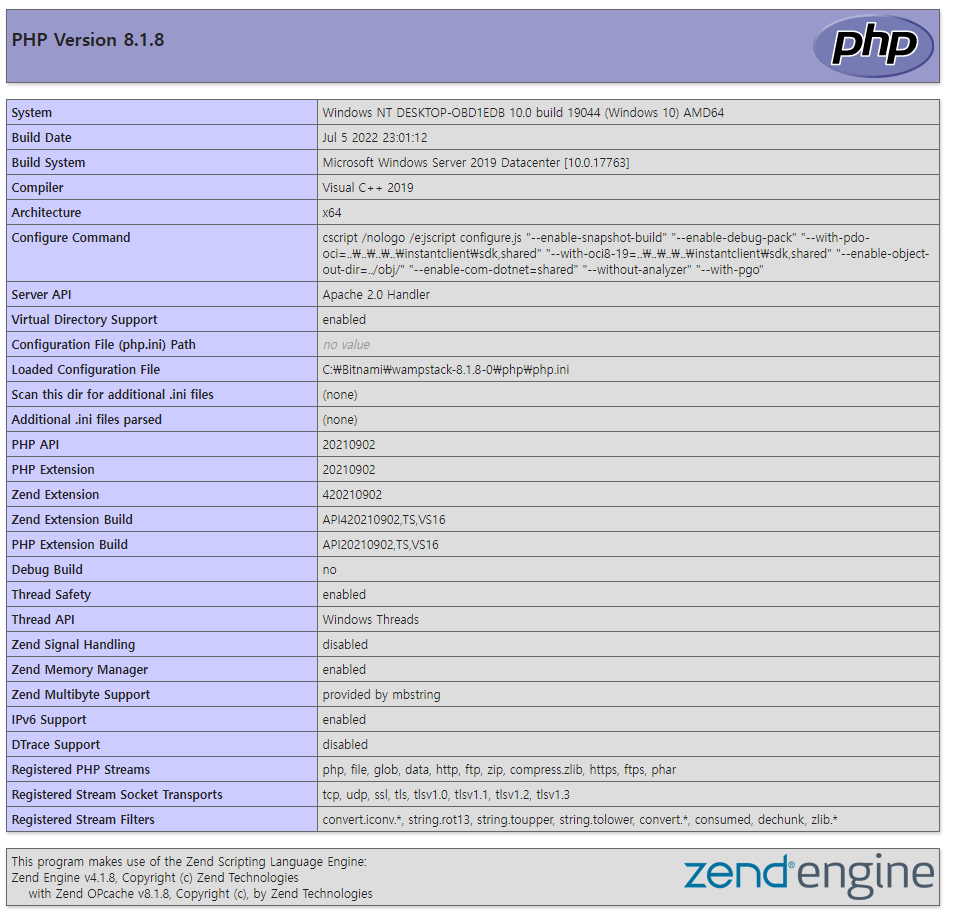 그리고 http://localhost/phpinfo.php 해당 url로 연결했을 때