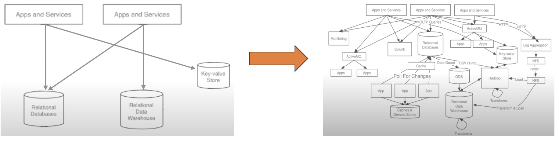 데이터 전송라인이 많아지면 배포와 장애에 대한 대응이 어려워진다.