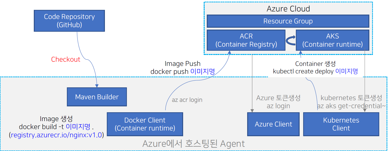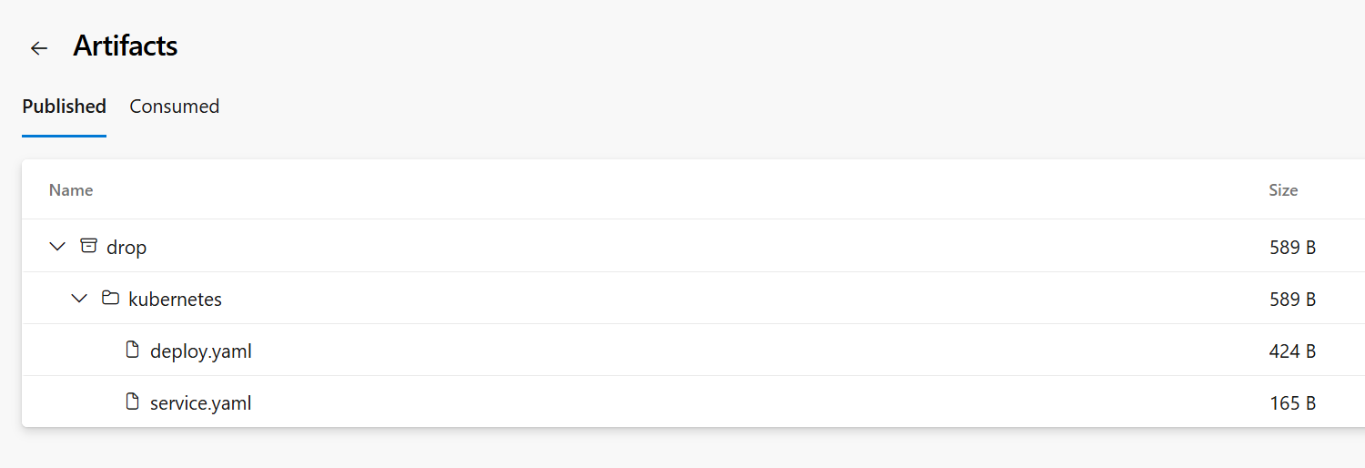 Dockerfile을 기준으로 컨테이너 이미지 생성latest 혹은 $(Build.BuildId) 적용deploy.yaml 파일 포함drop/kubernetes/deploy.yaml)에 저장