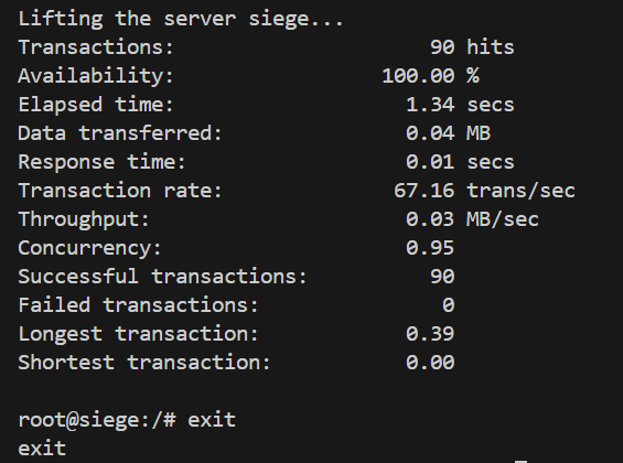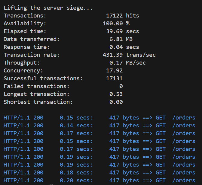 siege -c20 -t40S -v http://order:8080/orders