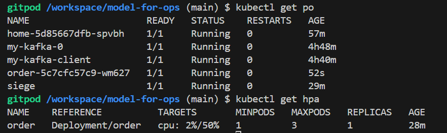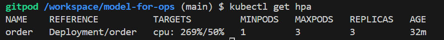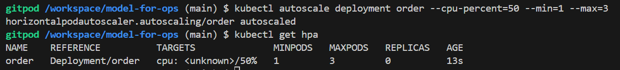 kubectl autoscale deployment order --cpu-percent=50 --min=1 --max=3