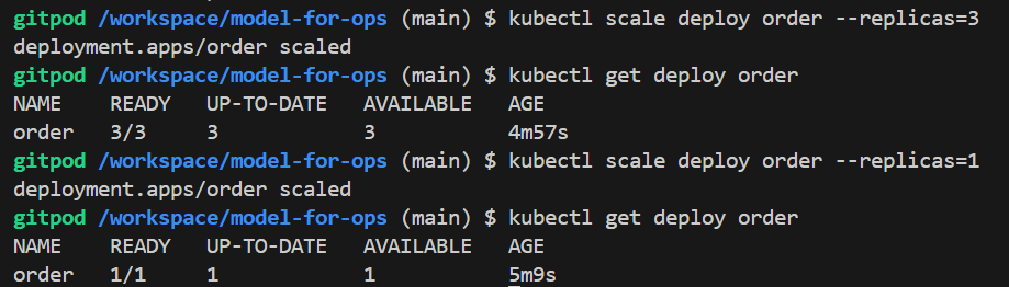 kubectl scale deploy order --replicas=3