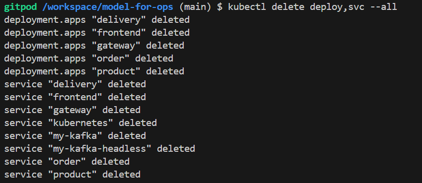 kubectl delete deploy,svc --all