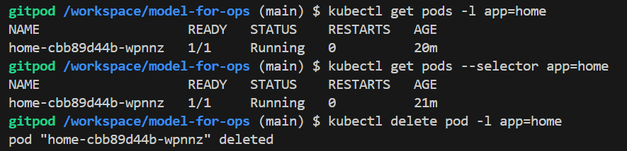 kubectl get pods --selector app=home