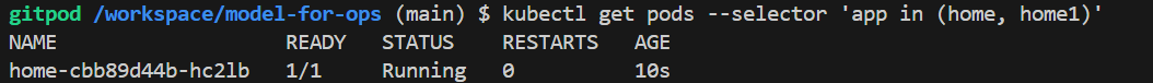kubectl get pods -l app=home