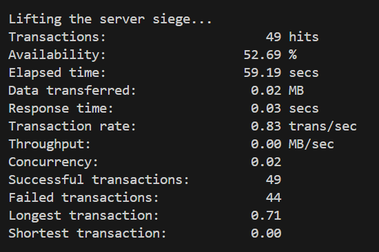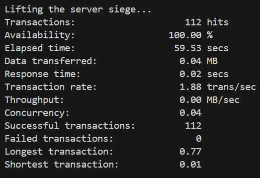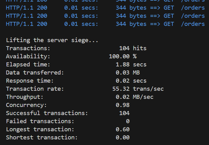 siege -c1 -t60S -v http://order:8080/orders --delay=1S