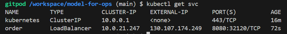 kubectl expose deploy order --type=LoadBalancer --port=8080