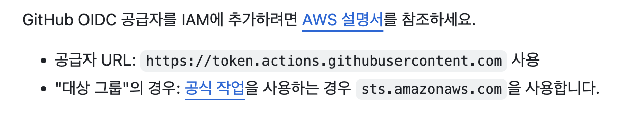 AWS는 OIDC를 지원하기 때문에 공식 문서에서 다음 항목을 찾았음.