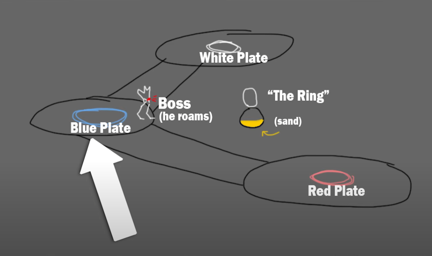 - 보스가 빨간 발판에서 등장하면 > 반드시 파란색 발판으로 올라오려 한다.