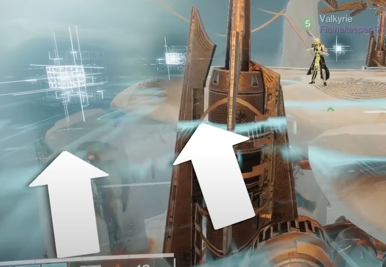 - 강제 점프 버프가 생기면, 이 세 사람은 3개의 탑에 존재하는 가장 아래 하얀색 벡스 박스를 동시에 부숴야 한다.