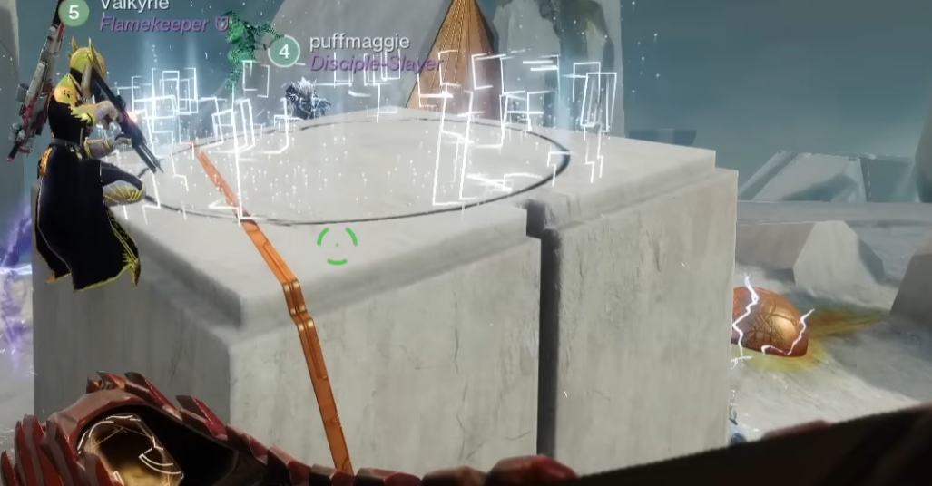 링이 전부 다 활성화 되었다면, 시간 정렬 버프를 가진사람이 5개의 활성화 된 링을 통과해 자신의 버프를 채운다.