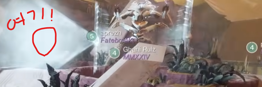 - 그러면 보스의 방어막에 육각형의 작은 눈 6개와 중앙 눈이 생기는데, 외곽의 눈 6개를 빠르게 부수고 안쪽 눈을 부순다.