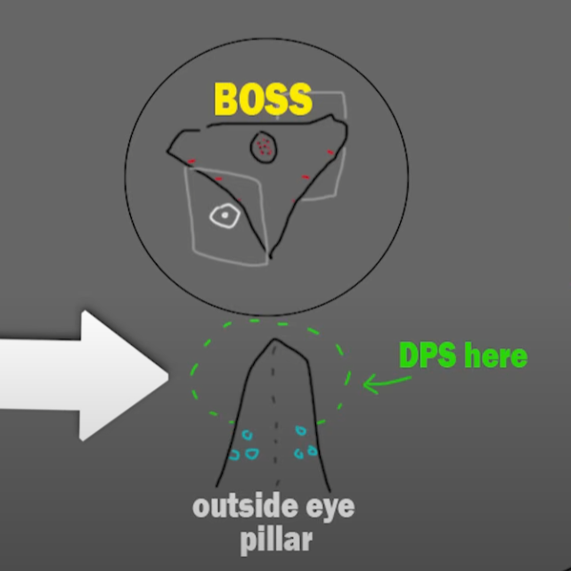 - 각 방의 한명이 한개의 눈을 부술수 있으며, 두개의 눈을 다 부술시 딜페가 시작된다.