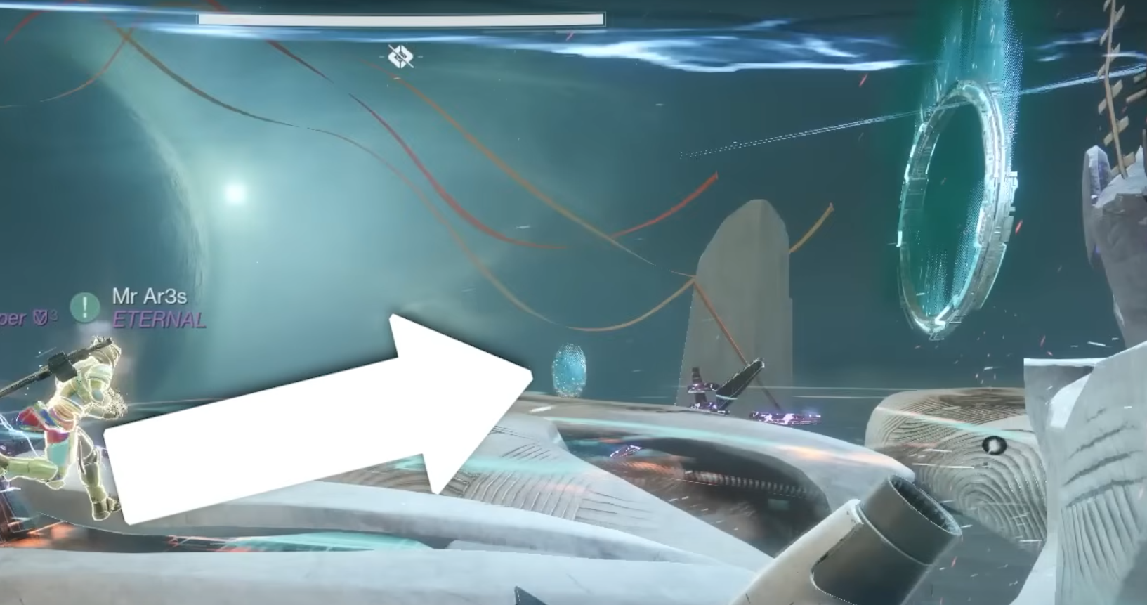 - 보스의 두개의 방어막중 빛나는 눈이 있는쪽으로 달려가 빛을 받는다