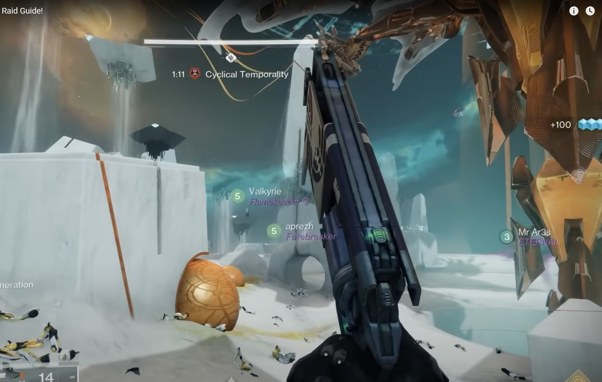 - 그러면 나머지 버프를 가지지 않은 3명은 다시 미노타를 잡고 시간 양자 버프를 얻어 비활성화 된 링을 통과해 재활성화 시킨다.