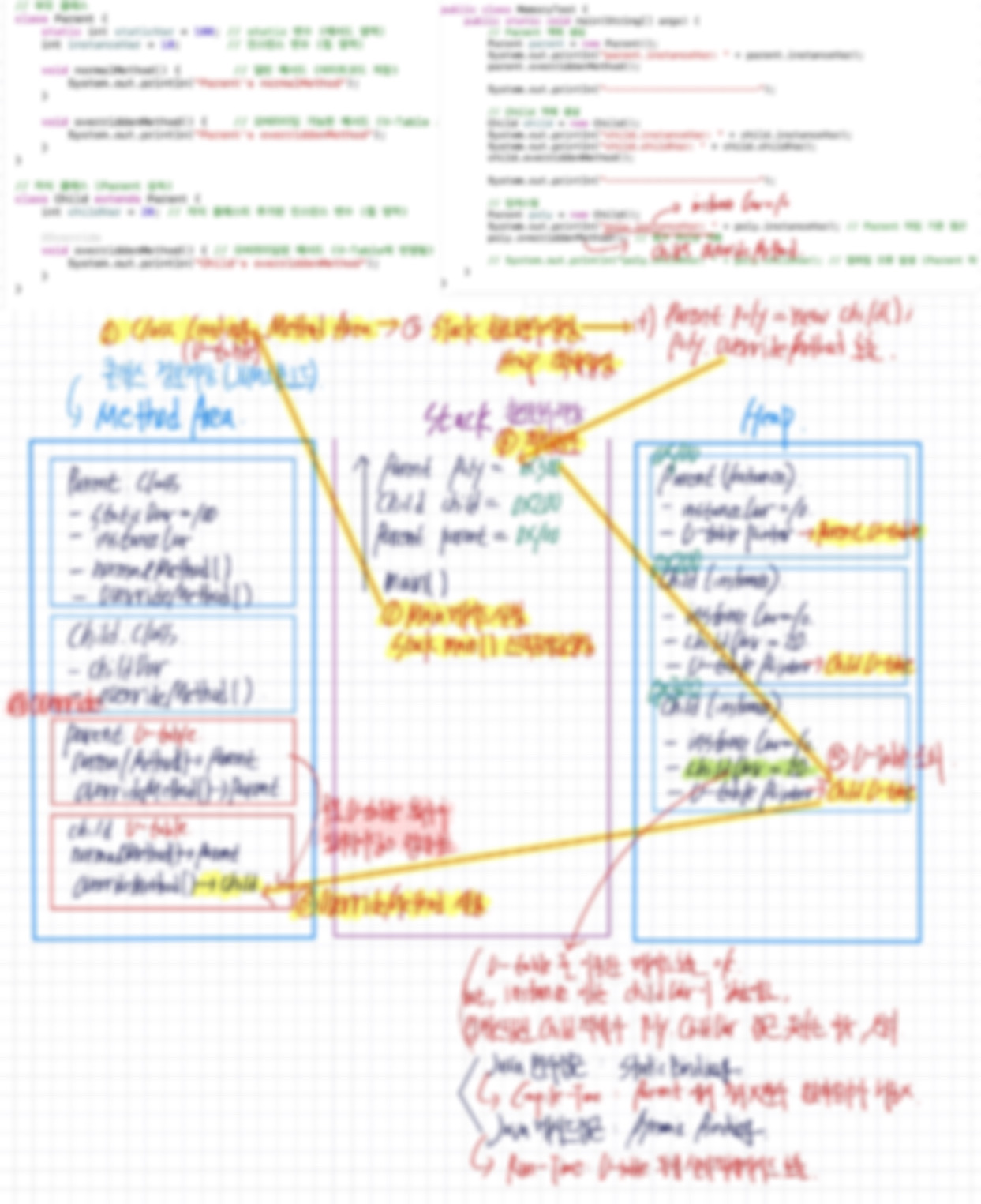 즉, 업캐스팅 되어도, 실제 객체가 자식 타입이면 자식 클래스의 메서드가 실행될 수 있다는 의미이다.