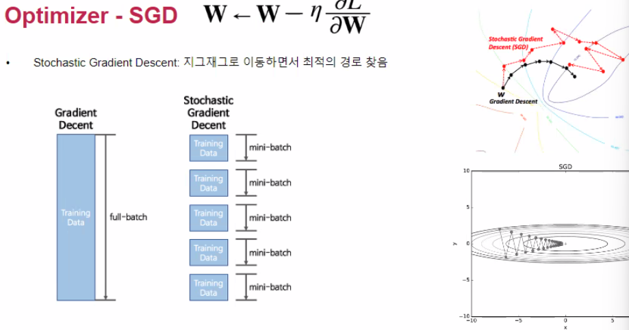 - SGD (지그재그로 이동하면서 최적의 경로 찾음, 복원추출)